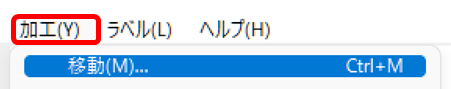 補助線を選択した状態で、「ctrl + m」または、上メニューの「加工」>「移動」をクリックします。
