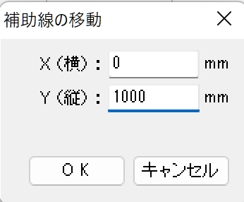 移動のメニューが表示されるので、移動したい方向に寸法を入力します。(左方向や下方向に移動したい場合はマイナスで入力します)