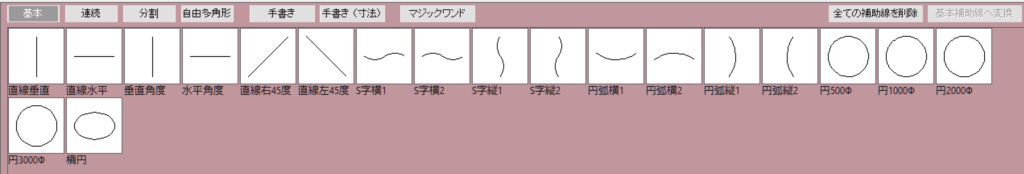 下側に補助線の一覧が表示されるので作成したい波線に近い形状のものを選択し、平面図にドロップします。