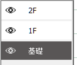 建物デザイナーで自動作成した家はデフォルトでは2Fになっています。各階の間取りを調整するときは、不要な間取りを非表示にすることで操作が見やすくなります。