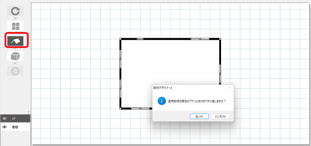 すると、「屋根設定を現在のプランにあわせて作り直しますか?」と表示されるので「はい」をクリックします。