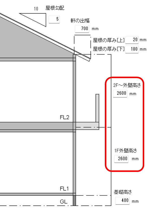 デフォルトでは各階の高さは2600に設定されています。