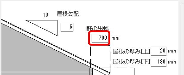 軒の出幅はデフォルトでは700になっています。