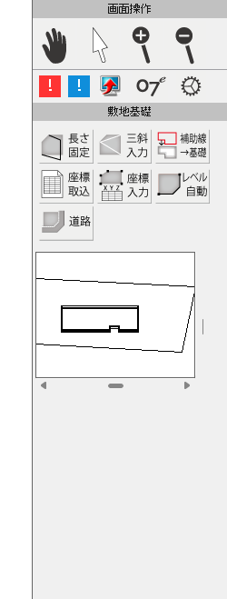 O7 CADを使って建物を描こうとした際に、建物デザイナーのマニュアルを見ると、「敷地基礎」レイヤーをクリックして「建物基礎」をクリックすると右側に「玄関設置ボタン」なるものが表示されるとの記載があります。