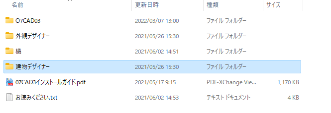 この中の「建物デザイナー」のフォルダを開きます。