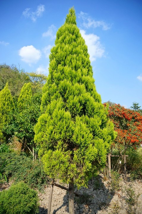 横方向に強く伸びることは無いので剪定も比較的容易です。ただし、木が成長して高くなったり、きれいな円錐形を保ちたい場合は剪定にかける時間が必要です。