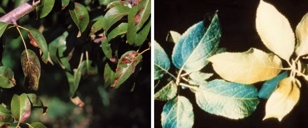 養分を吸い取られた葉っぱは部分的に白くなったり、枯れて茶色くなったりします。